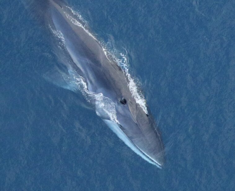 Fin whale slices blue water far off North Carolina’s coast (Clearwater Marine Aquarium Research Institute/NOAA permit 26919)