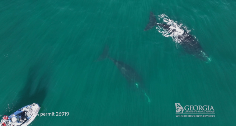• Also, the DNR researchers shown here have the training and federal permits required to approach right whales safely and legally. It is illegal to approach right whales in U.S. waters without a research permit. Other vessels, aircraft and drones must maintain a distance of at least 500 yards from these endangered whales.