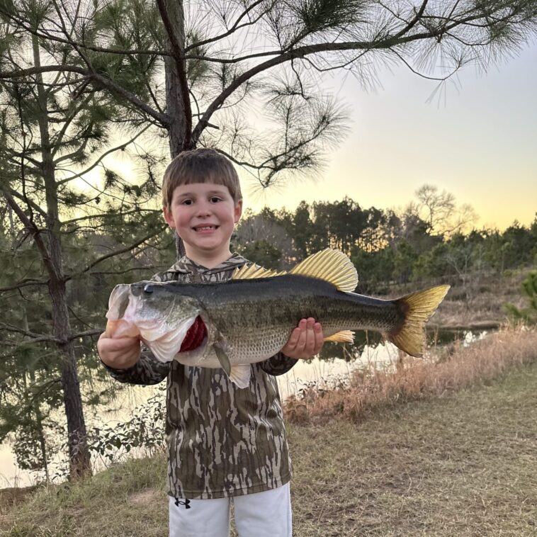 Angler Blake Manning with ~7 lb largemouth from Flat Creek PFA.